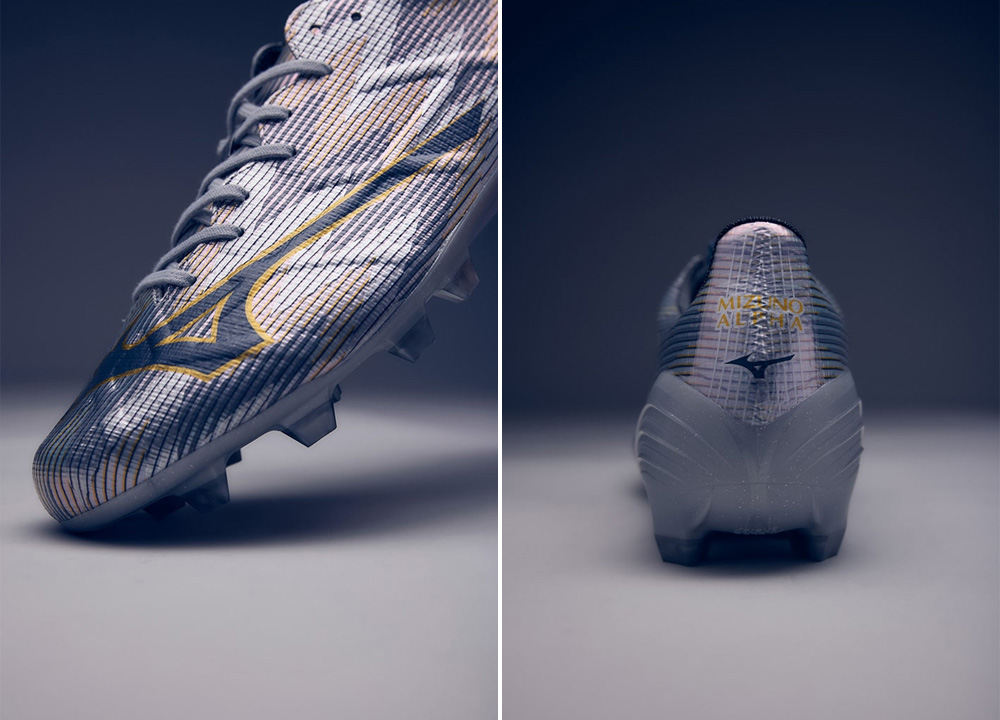 Alpha 2 lại một lần nữa được phát hành góp mặt trong dòng sản phẩm Made In Japan - phiên bản cao cấp nhất được chế tác thủ công 100% từ những vật liệu tốt nhất tại nhà máy Mizuno ở Nhật Bản. Giữ vững tinh thần của Alpha 2 ra mắt đầu năm nay, phiên bản này tiếp tục khoác lên mình lớp phủ ánh kim/chrome rực rỡ, thể hiện trọn vẹn ý tưởng ‘tốc độ ánh sáng’ để khẳng định vị thế của mình trong phân khúc giày tốc độ trong một thị trường cạnh tranh khốc liệt với những đối thủ như Mercurial và F50.