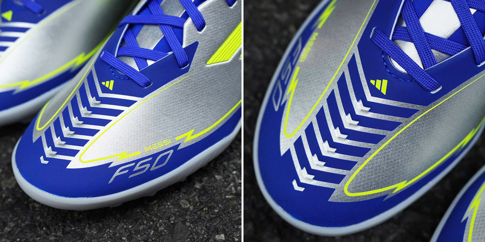 Tốc độ luôn là yếu tố then chốt của dòng giày đá bóng adidas F50, và phiên bản này cũng không ngoại lệ. Để nhấn mạnh điều đó, adidas và Messi đã chọn tên gọi 'La Vida Rapida' (Cuộc sống tốc độ) cùng phối màu 'Silver Met/Solar Yellow/Lucid Blue' (Bạc kim loại/Vàng/Xanh) đầy năng động.