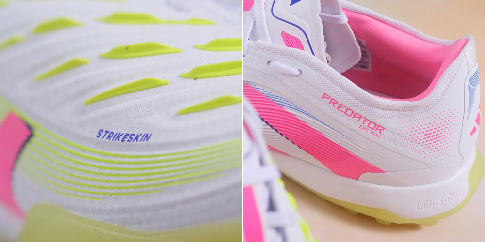 Cụm vân cao su Strikeskin lần này được tinh chỉnh thông minh: mỏng hơn, gọn hơn, phủ đúng nơi cần – nhất là khu vực má trong. Nhờ đó, từng pha chuyền, cứa lòng hay nhả bóng đều ra nét, đúng chất “kiểm soát chủ lực” của Predator.