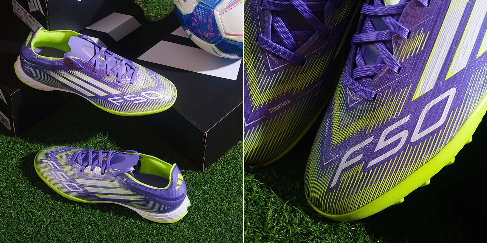 Đánh dấu sự trở lại đầy mạnh mẽ của dòng giày tốc độ lừng danh, adidas F50 Pro TF phiên bản Radiant Blaze Pack mang đến phối màu Tím/Trắng/Vàng cực kỳ bắt mắt, lấy cảm hứng từ năng lượng mặt trời bùng cháy. Mẫu giày được thiết kế dành riêng cho sân cỏ nhân tạo 5-7 người, tối ưu cho các cầu thủ thiên về tốc độ, kỹ thuật và khả năng bứt phá.