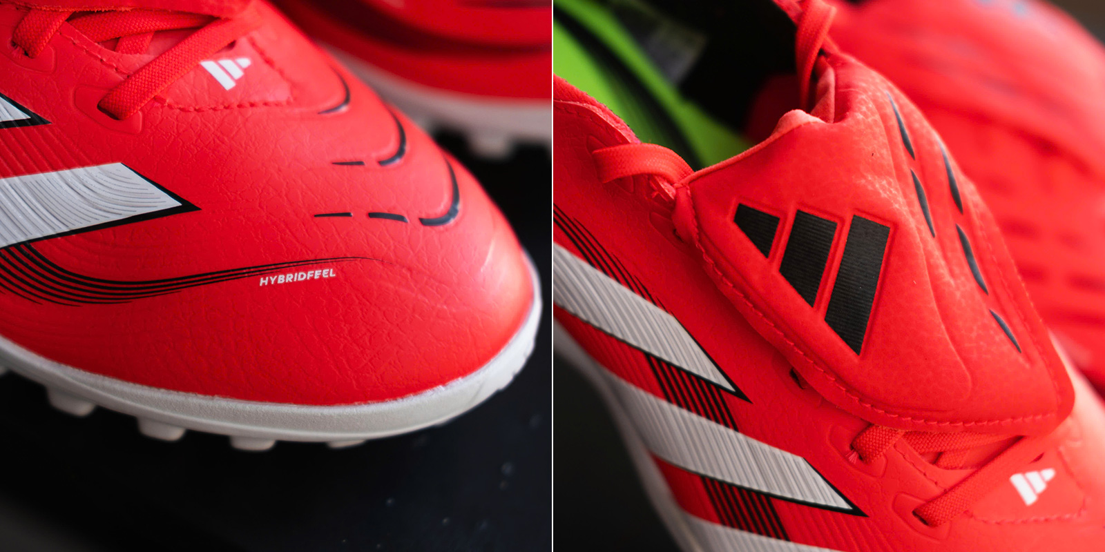 Phần upper được làm từ chất liệu da nhân tạo Hybridfeel mềm mỏng và đàn hồi, giúp mang lại cảm giác chạm bóng thật chân nhất cho người chơi.