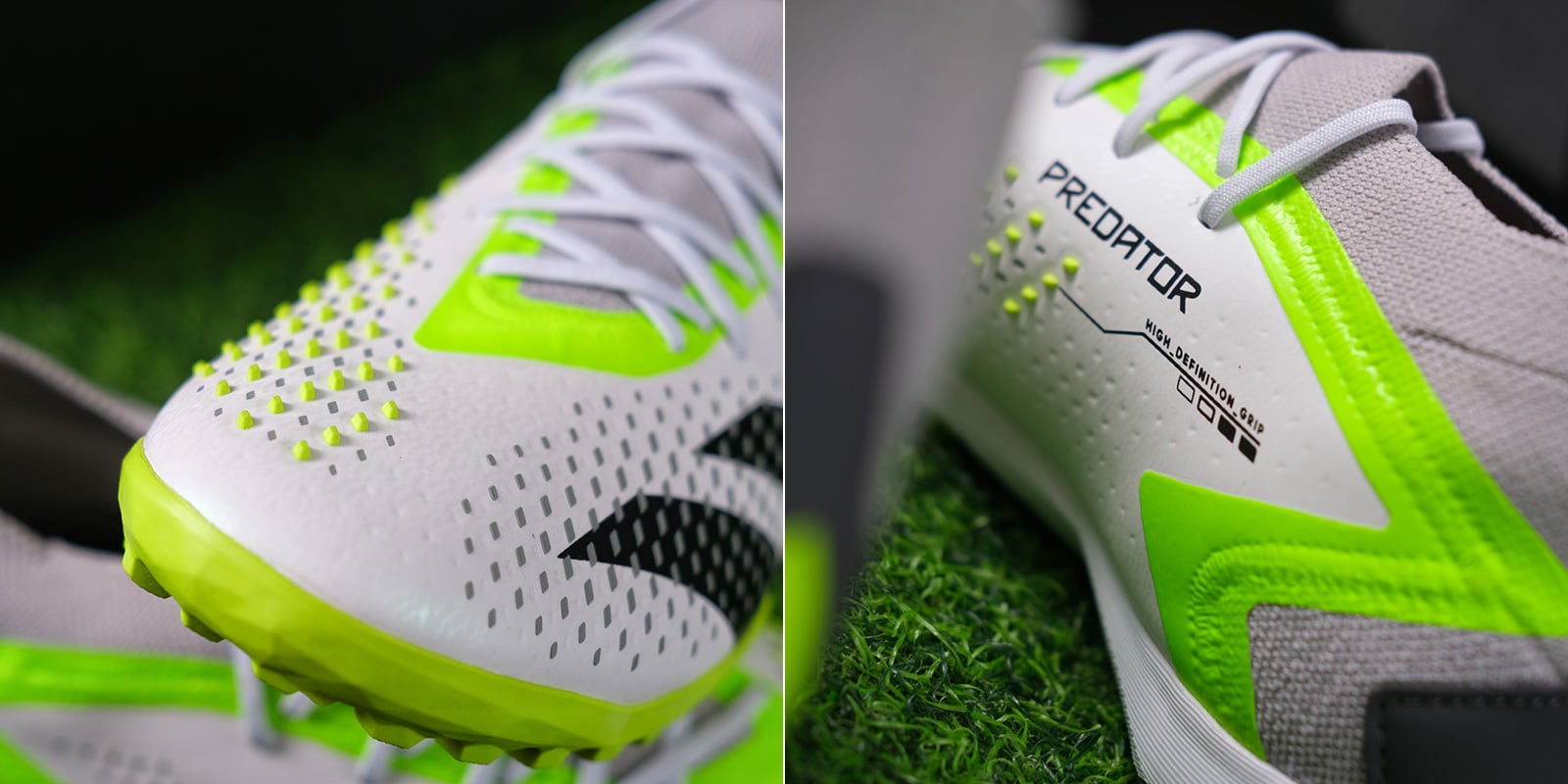 Các vân cao su High Definition Grip được phủ ở khu vực má trong làm tăng độ ma sát với bóng, từ đó giúp người chơi có thể dễ dàng thực hiện các đường chuyền hay cú sút với độ chính xác cao.