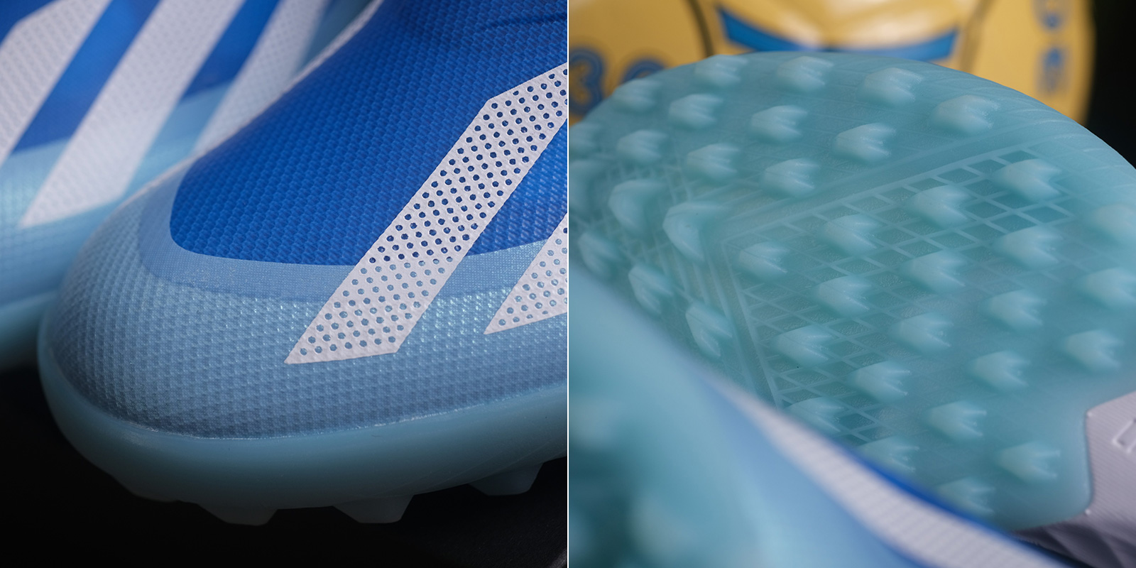 Phần upper làm từ chất liệu AEROPACITY - loại sợi dệt bán trong suốt siêu mỏng - giúp mang lại cảm giác bóng thật chân nhất cho người chơi. Trên bề mặt upper được phủ một lớp SPEEDSKIN giúp tăng khả năng kiểm soát khi rê dắt bóng ở tốc độ cao.