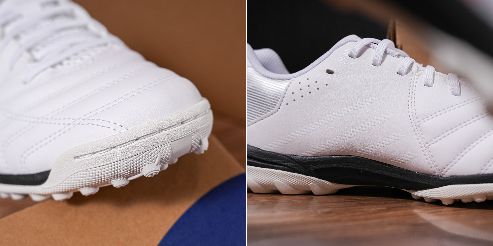 Phần đế ngoài làm từ chất liệu cao su cao cấp với các đinh dạng tròn lớn bé khác nhau giúp tăng độ bám sân, đồng thời hỗ trợ khả năng xử lý bóng bằng gầm.