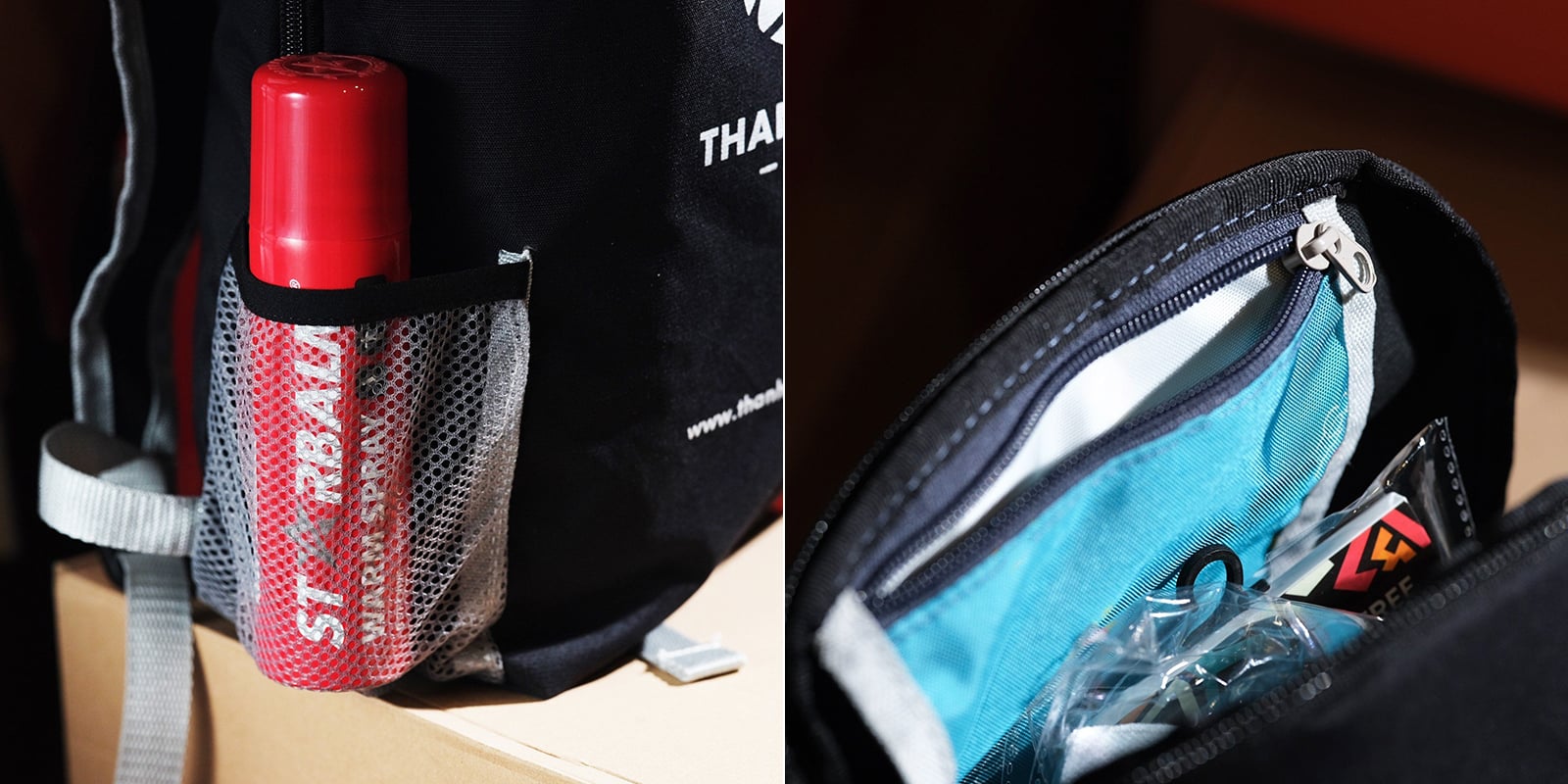 Balo được may với chất liệu vải Polyeste chống thấm nước nhẹ, trọng lượng balo tầm 200gram. Màu sắc vải được phối giữa màu đỏ đô và xám mang lại cảm giác khá đơn giản không rườm rà, thoải mái khi đeo.