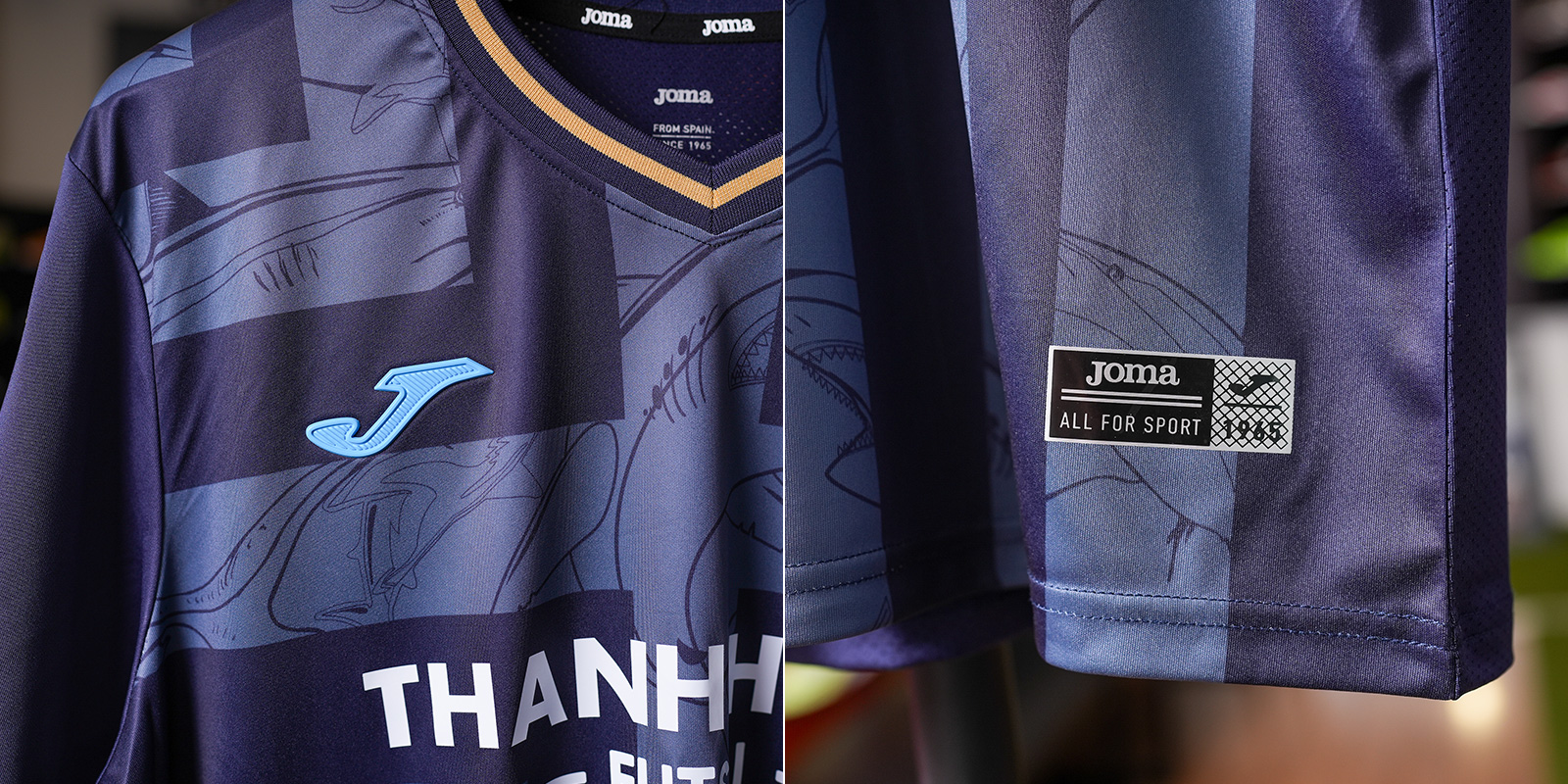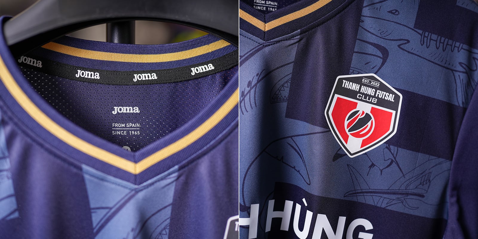 Bộ trang phục thi đấu chính thức của Thanh Hùng Futsal Club do JOMA sản xuất, thiết kế lấy cảm hứng từ hình tượng cá heo trắng vùng Á Lý Hải – Một trong những loài sinh vật quý hiếm đang đối mặt nguy cơ tuyệt chủng. Họa tiết trên thân áo được xử lý in chuyển nhiệt (sublimation) độ phân giải cao, giúp giữ màu sắc bền, sắc nét, đồng thời truyền tải thông điệp bảo tồn thiên nhiên một cách tinh tế.