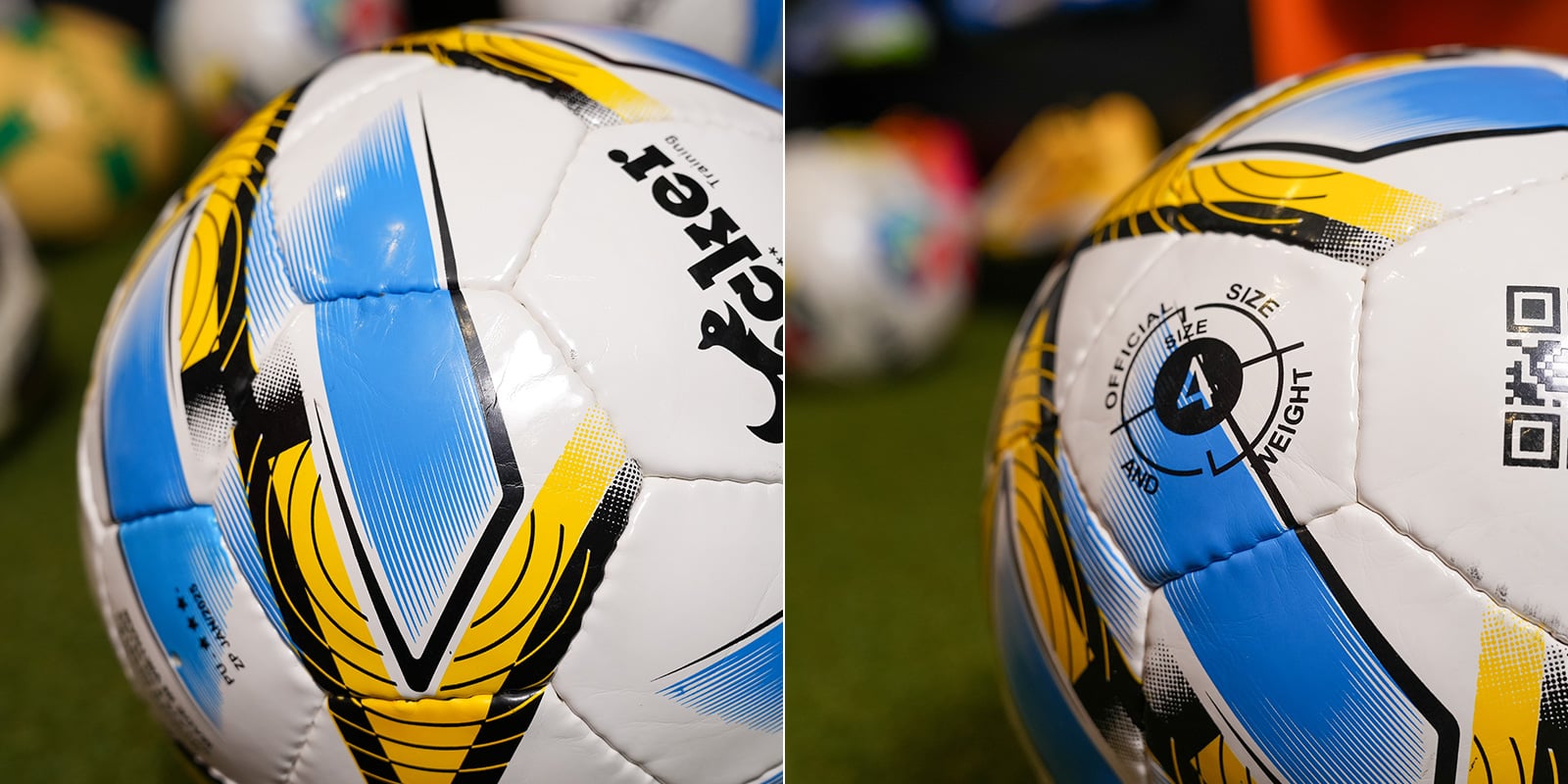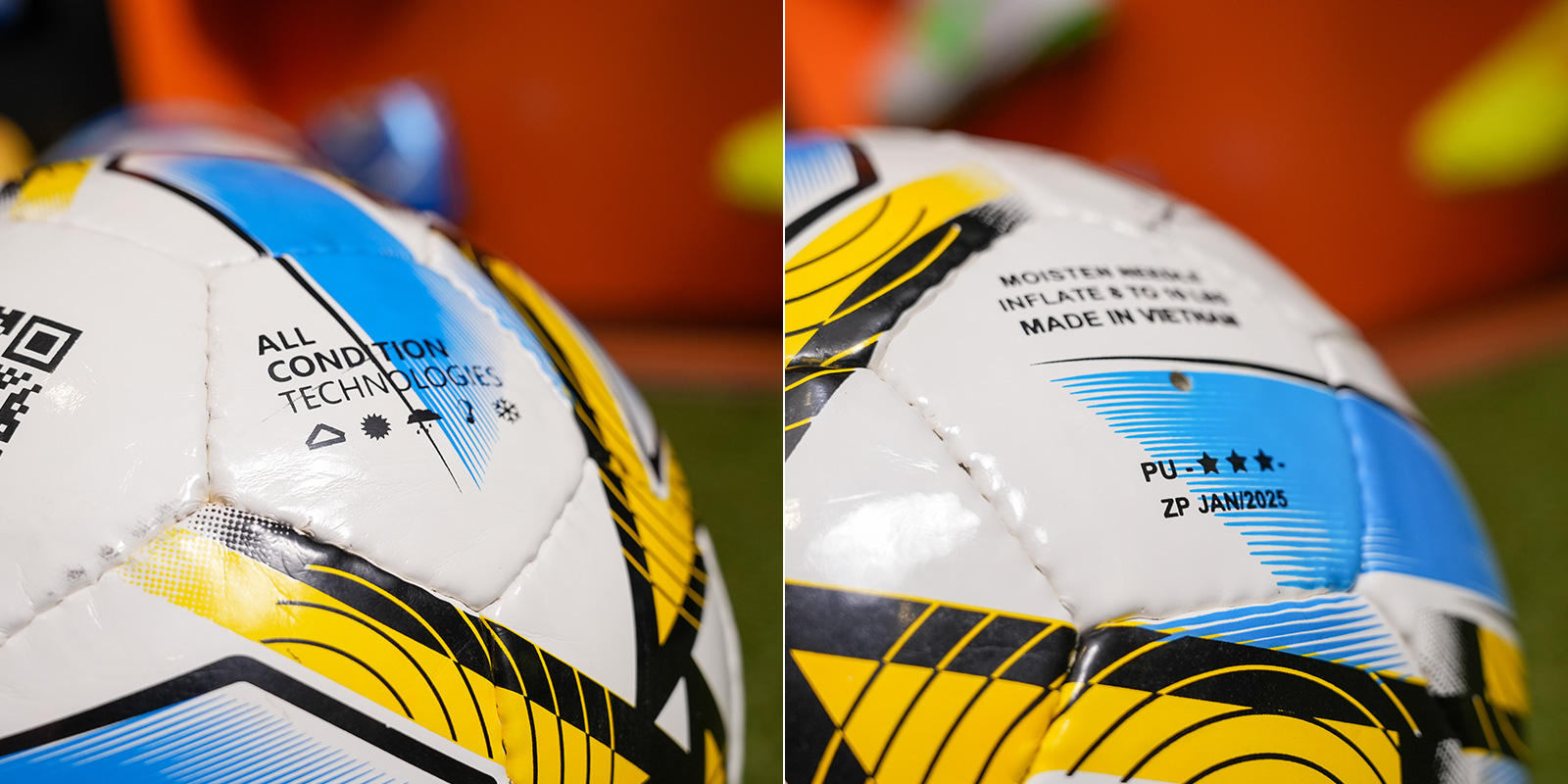 Chất liệu PU cao cấp: Bề mặt mềm, bám chân, dễ kiểm soát bóng và sút chính xác.