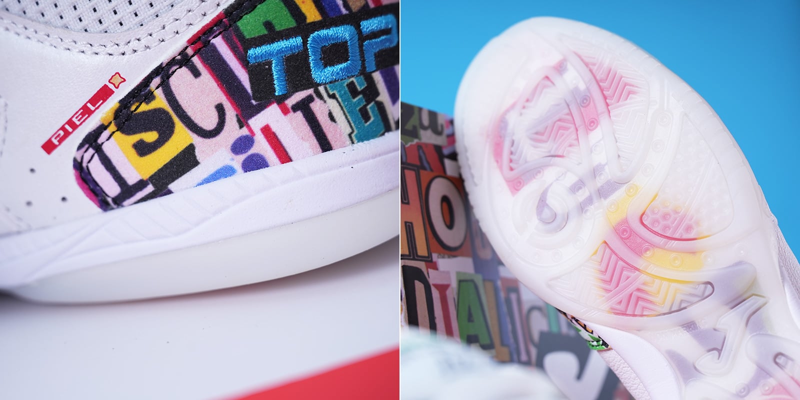Gia cố mũi PROTECTION: Phần mũi giày được bọc thêm lớp vật liệu bảo vệ cứng cáp, cực kỳ đáng giá cho những pha "chích mũi" đặc trưng – vũ khí hủy diệt của các tiền đạo futsal.
