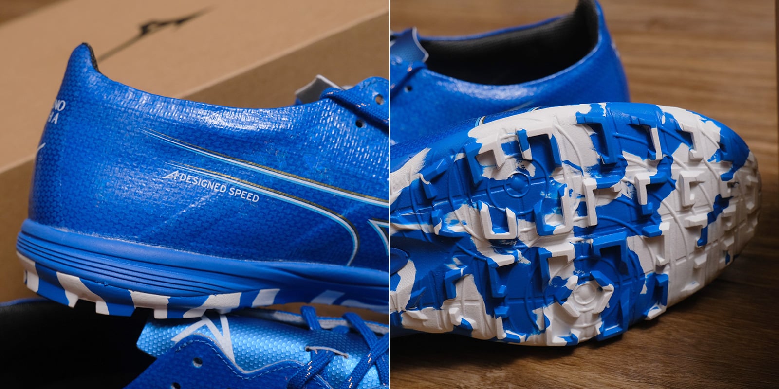 “Mugen Pack” là bộ sưu tập giày bóng đá chính thức của Mizuno tại EURO, Copa America và Olympic 2024. ‘Mugen' trong tiếng Nhật có nghĩa là 'vô hạn', tượng trưng cho tinh thần không giới hạn và khát khao vươn tới đỉnh cao. Với tông màu trắng và xanh dương chủ đạo, mẫu giày đá bóng sân cỏ nhân tạo Mizuno Alpha Pro AS “Mugen Pack" sẽ mang đến sự tươi mới, năng động và cảm giác bùng nổ năng lượng cho người chơi mỗi khi ra sân thi đấu.