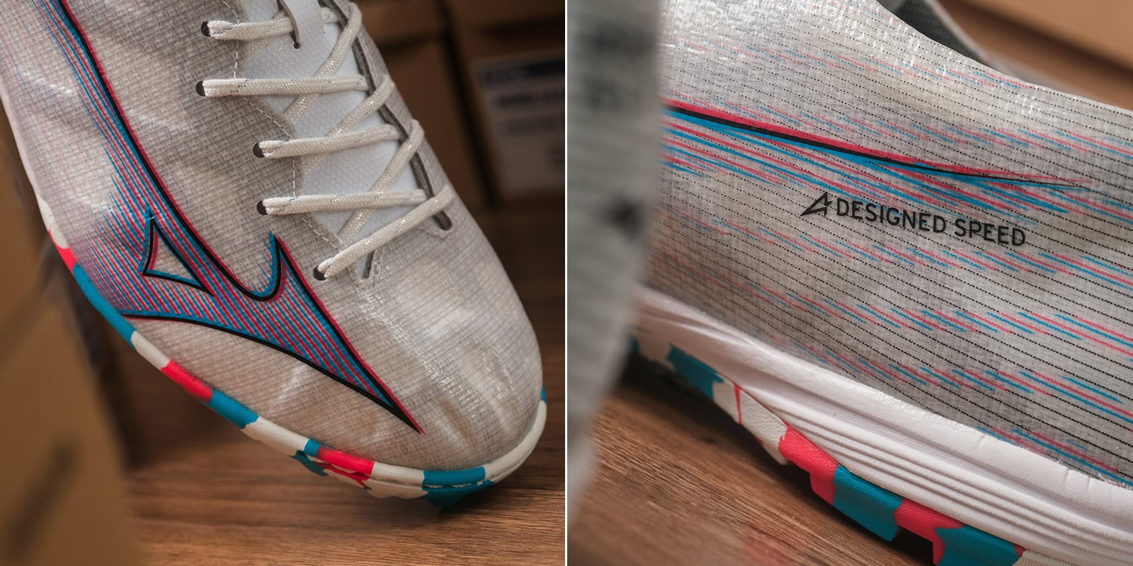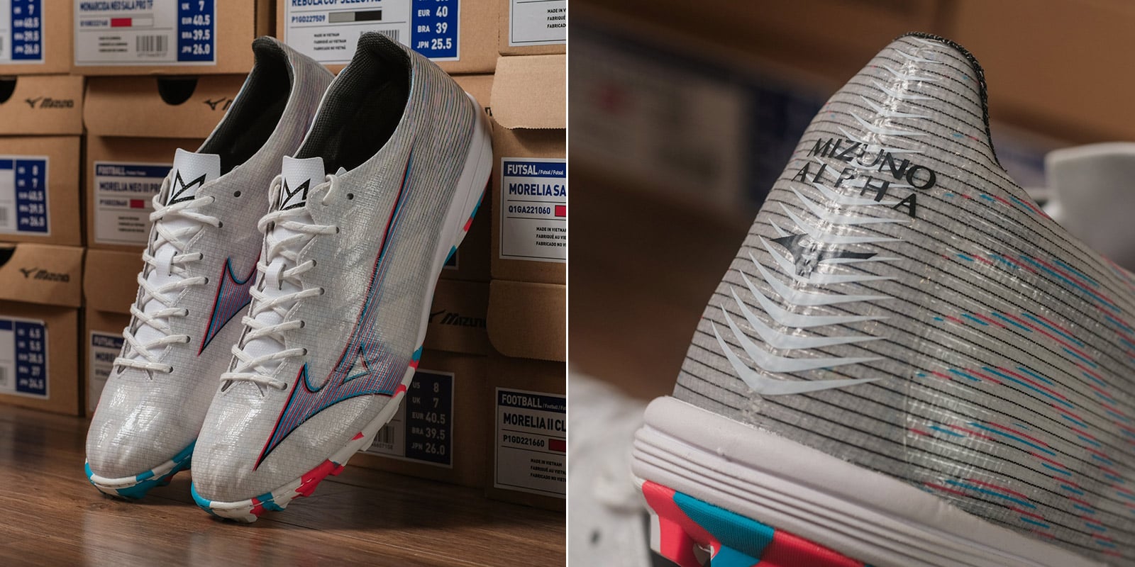 Mizuno Alpha Pro AS là dòng giày bóng đá sân cỏ nhân tạo mới ra mắt của Mizuno cuối năm 2022 với trọng lượng rất nhẹ, chỉ 215g cùng thiết kế độc đáo dành cho các cầu thủ ưa thích lối chơi tốc độ. Đây là mẫu giày được tối ưu phần bề mặt nên dù không được làm từ da thật, Mizuno Alpha Pro AS vẫn có độ mềm mại ấn tượng và cảm giác chân rất tốt. Đặc trưng của dòng giày này đó là cấu trúc Engineered Fit woven giúp bề mặt giày co giãn nhẹ theo chiều ngang mà không bị giãn theo chiều dọc, mang tới sự thoải mái và ôm chân cho dù bạn có bàn chân bè.