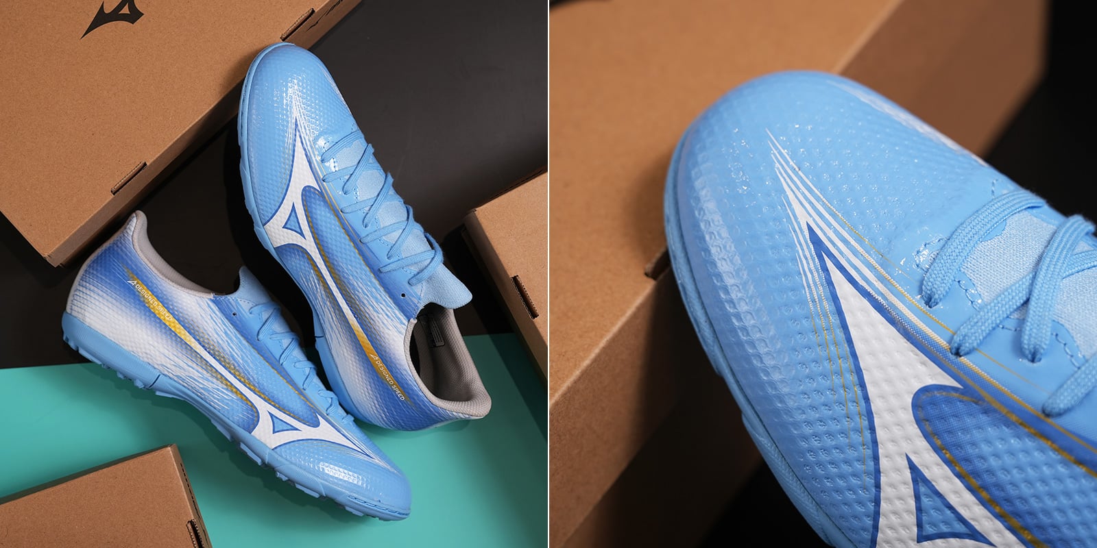 Mizuno Alpha Select AS là dòng giày bóng đá sân cỏ nhân tạo mới ra mắt của Mizuno cuối năm 2022 với trọng lượng nhẹ, chỉ 245g cùng thiết kế mới độc đáo dành cho các cầu thủ ưa thích lối chơi tốc độ. Đây là mẫu giày được tối ưu phần bề mặt nên dù không được làm từ da thật, Mizuno Alpha Select AS vẫn có độ mềm mại và cảm giác chân rất tốt. Phần thân giày được thiết kế với logo Mizuno chạy dài cùng những đường gợn sóng ở phần gót giày mang tới sự tinh tế, ấn tượng cho tổng thể thiết kế. Đặc biệt, hơn 50% upper giày được làm từ vật liệu tái chế, góp phần bảo vệ môi trường.