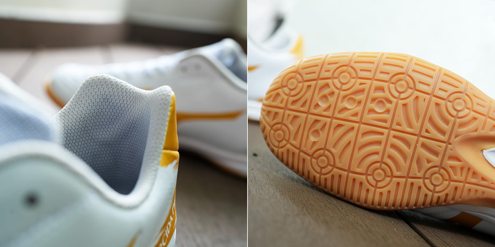 Chất liệu da tổng hợp thế hệ mới: Thân giày sử dụng da microfiber mềm, mịn và ôm chân, mang lại cảm giác bóng cực tốt và xử lý bóng mượt mà trong không gian hẹp.