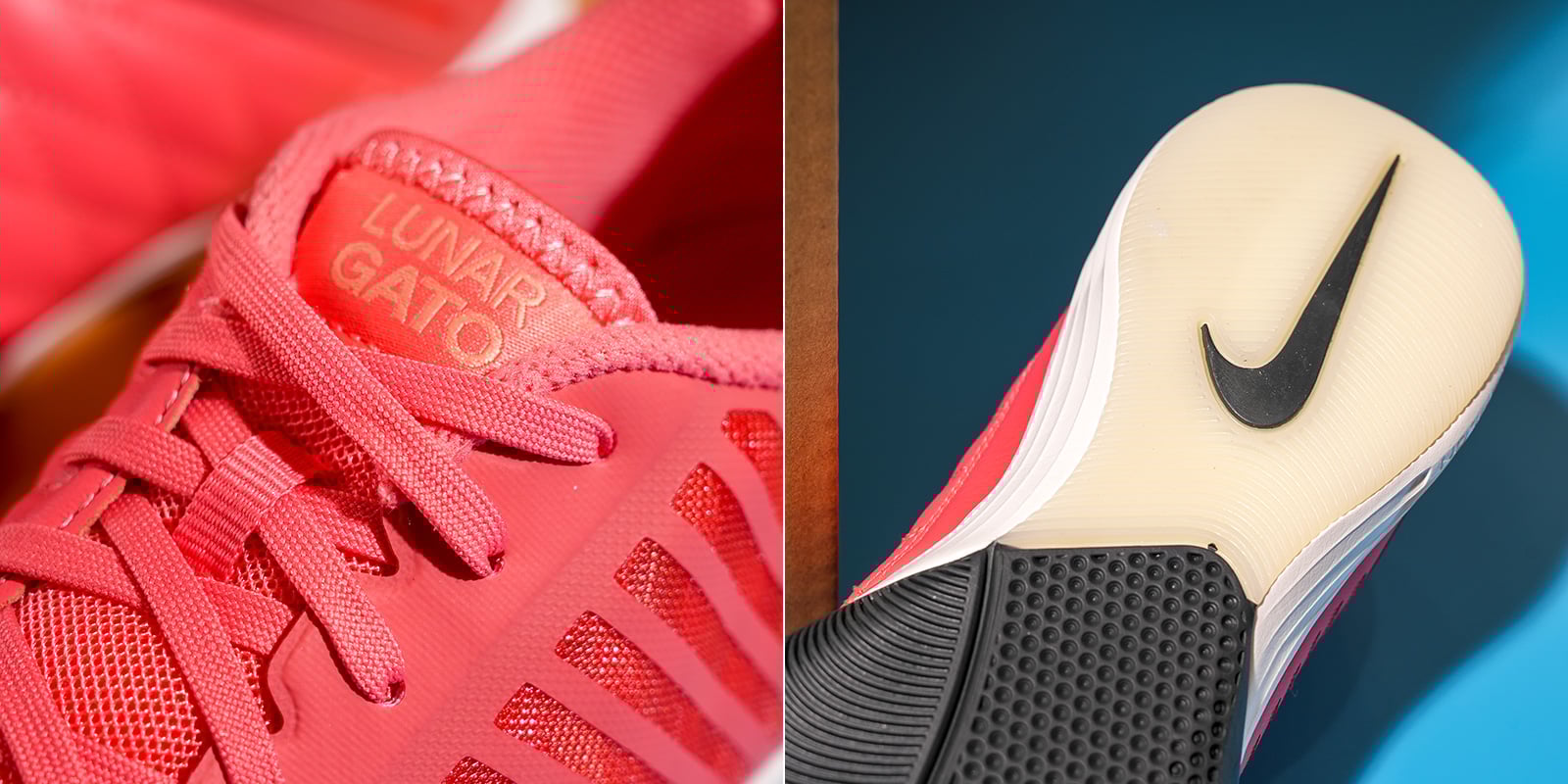 Đế giày: Giày đá banh sân futsal - Nike Lunar Gato II với bộ đế Lunarlon trứ danh, đây là loại đế được làm từ vật liệu cao su từng được đánh giá là êm nhất, có độ nảy tốt nhất của Nike. Bộ đệm Lunarlon trải dài theo đế giày và có độ dày lớn nhất ở phần gót, tất nhiên lý do là để tạo độ êm ái cho gót chân, vị trí chịu nhiều tác động lực nhất khi bạn chạy hay lấy đà sút và chuyền bóng.