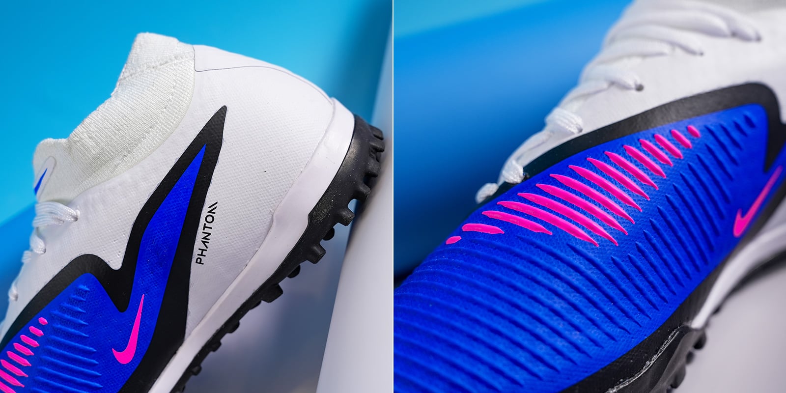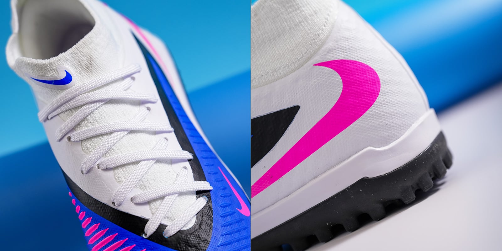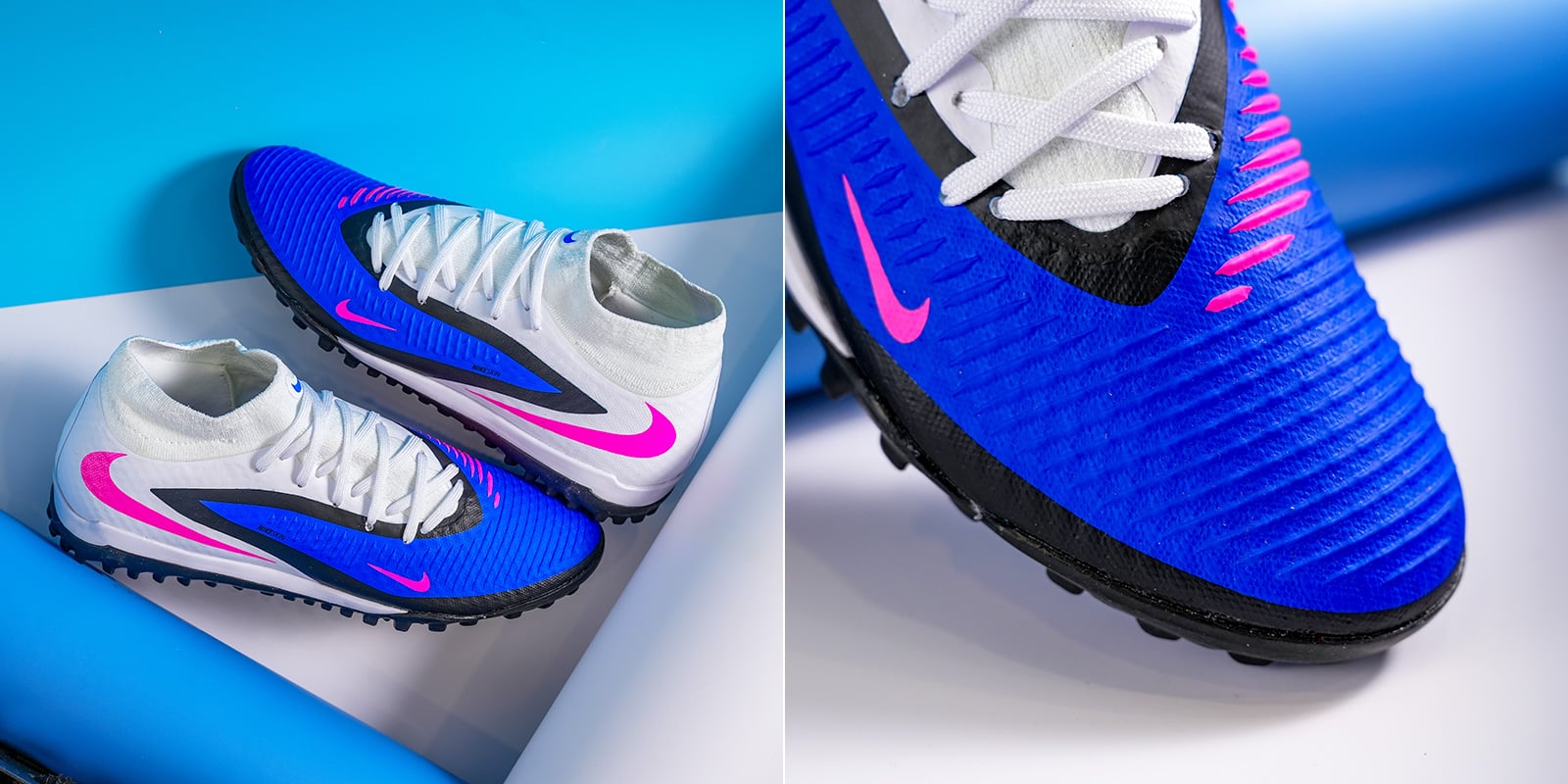 Thuộc Nike Attack Pack (01.2026), phối màu Racer Blue/White/Pink Blast tạo hiệu ứng rất “sát thương”: xanh Racer Blue lạnh làm nền chính cho cảm giác sắc nét, mảng trắng giữ tổng thể sạch và nổi, còn điểm hồng Pink Blast là cú nhấn đúng chỗ để đôi giày nhìn hiện đại và cực bắt mắt khi lên sân đèn. Tổng thể: lạnh - gọn - nguy hiểm, đúng chất Phantom khi bạn muốn làm chủ pha bóng.