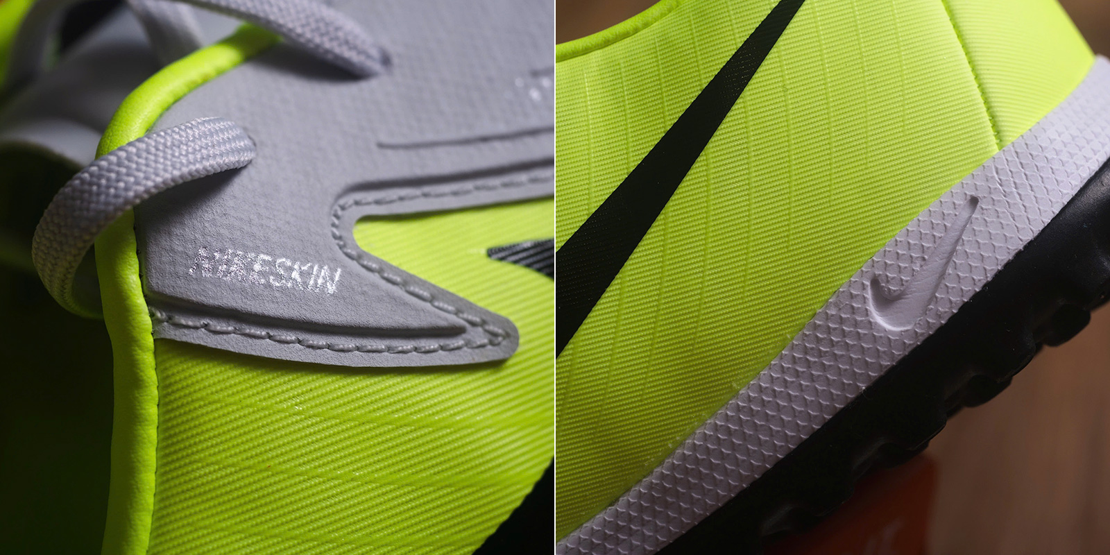 Phần upper làm từ da tổng hợp mềm mại được mô phỏng theo chất liệu sợi dệt sẽ mang đến cảm giác thật chân nhất trong từng pha chạm bóng. Trên bề mặt Phantom GX Academy TF được trang bị thêm lớp phủ NikeSkin giúp tăng độ bám bóng, từ đó người chơi có thể kiểm soát và rê bóng tốt hơn ở bất kỳ điều kiện thời tiết.