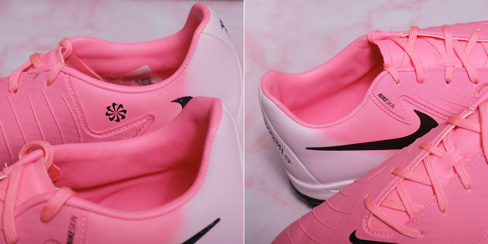 Phần upper làm từ da tổng hợp mềm mại được mô phỏng theo chất liệu sợi dệt sẽ mang đến cảm giác thật chân nhất trong từng pha chạm bóng. Trên bề mặt Phantom GX Academy TF được trang bị thêm lớp phủ NikeSkin giúp tăng độ bám bóng, từ đó người chơi có thể kiểm soát và rê bóng tốt hơn ở bất kỳ điều kiện thời tiết.