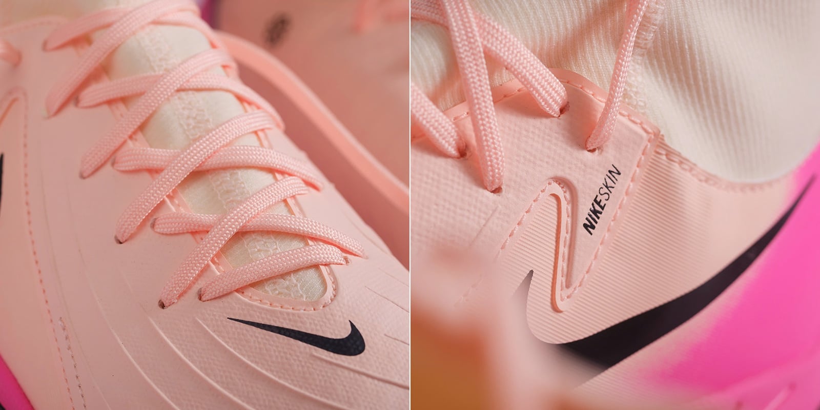Phần upper làm từ da tổng hợp mềm mại được mô phỏng theo chất liệu sợi dệt sẽ mang đến cảm giác thật chân nhất trong từng pha chạm bóng. Trên bề mặt Phantom Luna 2 Academy TF được trang bị thêm lớp phủ NikeSkin giúp tăng độ bám bóng, từ đó người chơi có thể kiểm soát và rê bóng tốt hơn ở bất kỳ điều kiện thời tiết.