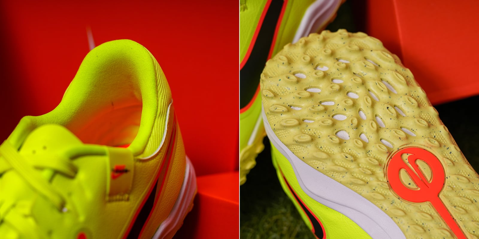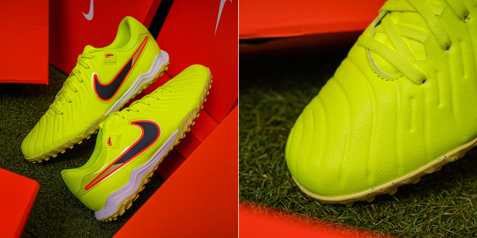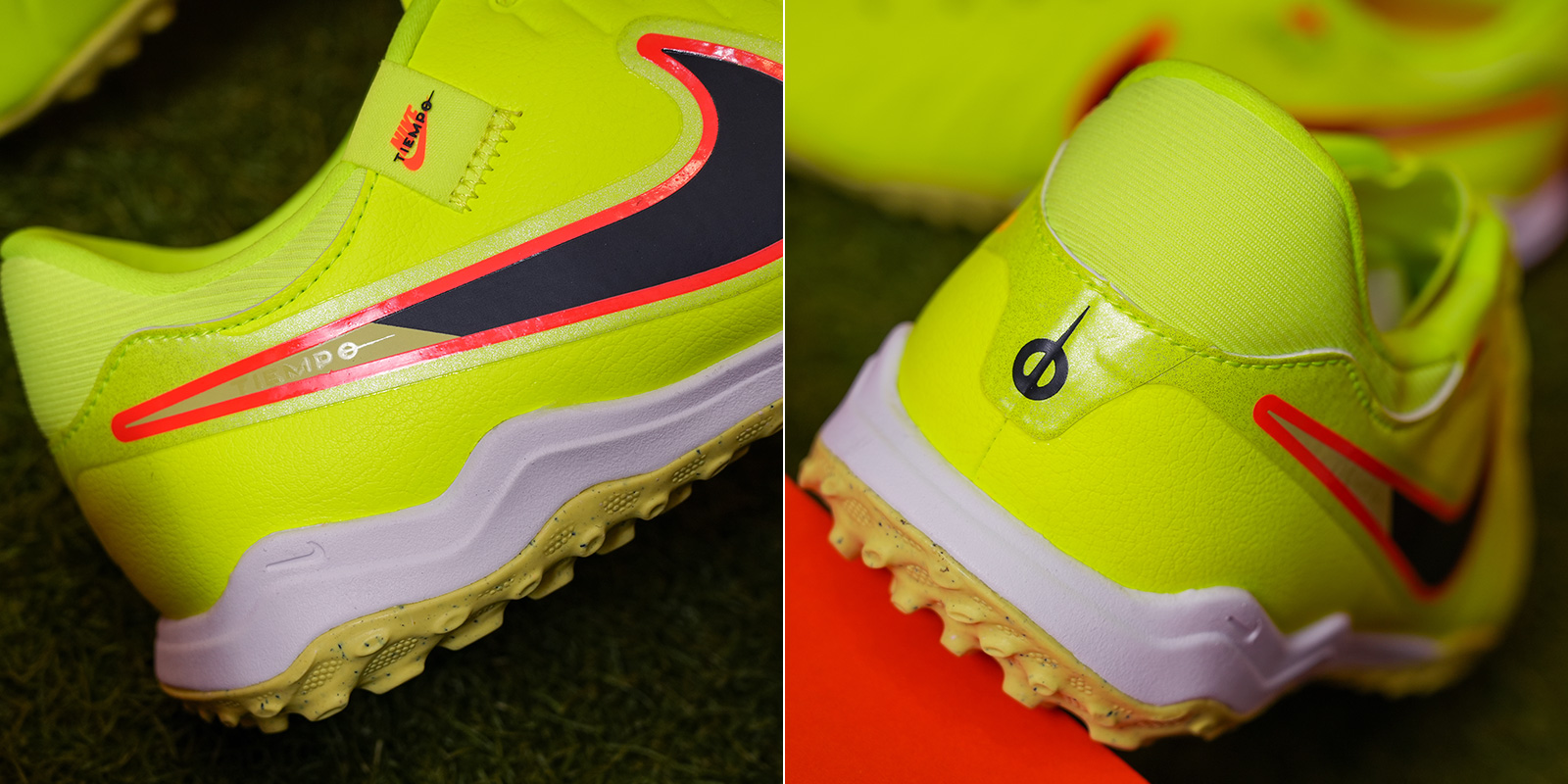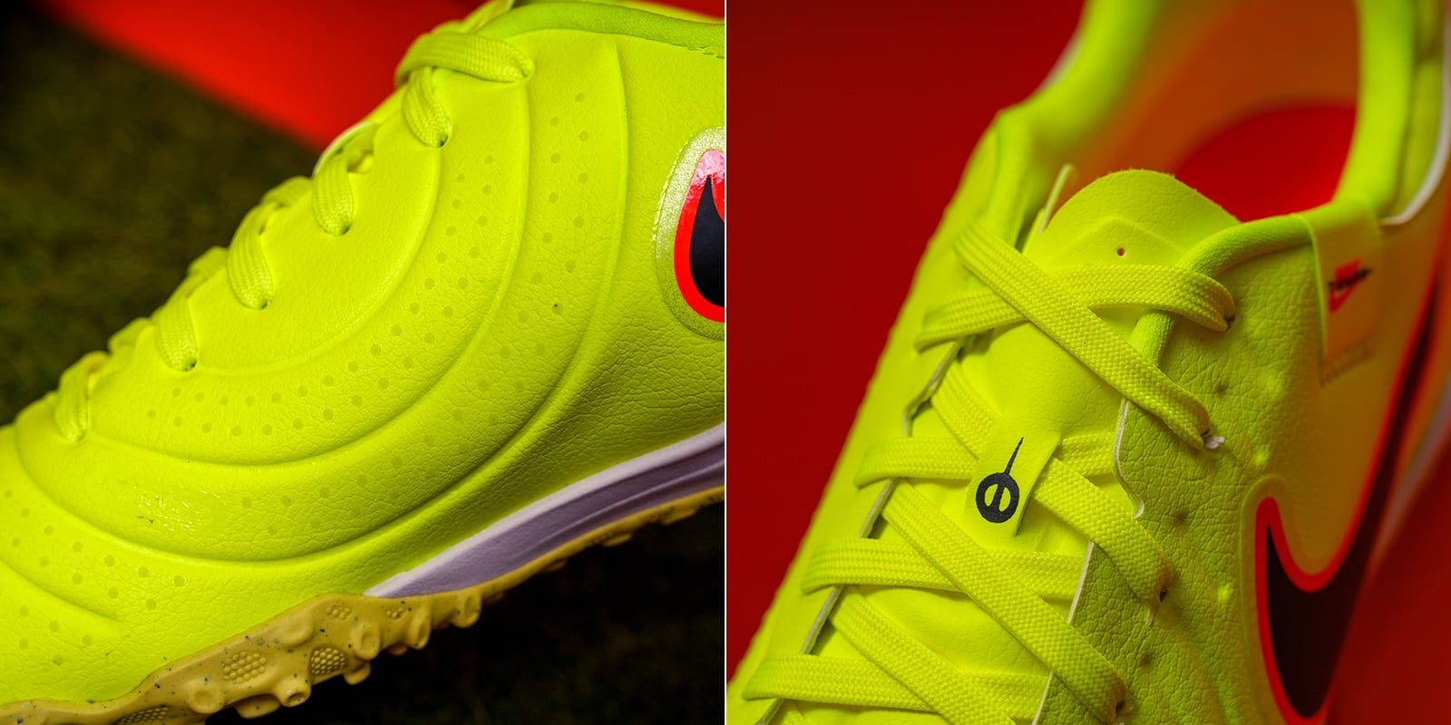 Thế hệ Tiempo 10 đánh dấu bước chuyển mình lớn khi Nike lần đầu tiên loại bỏ hoàn toàn da tự nhiên, thay bằng FlyTouch Lite engineered leather - chất liệu tổng hợp cao cấp mềm hơn da thật, ôm chân mà không bị giãn. Bề mặt upper với các micro-dots được bố trí chính xác tại vùng tiếp xúc bóng, giúp tăng độ nhạy khi rê, chuyền và dứt điểm.