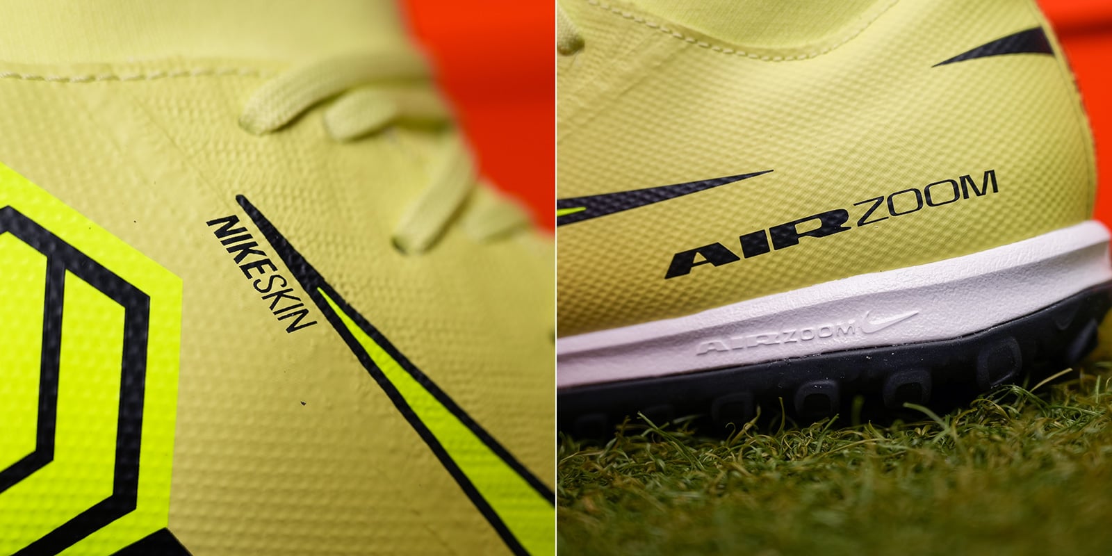 Phần upper sử dụng vật liệu tổng hợp NikeSkin với cấu trúc mỏng, nhẹ, linh hoạt, mang lại cảm giác tiếp xúc bóng gần như chân trần.