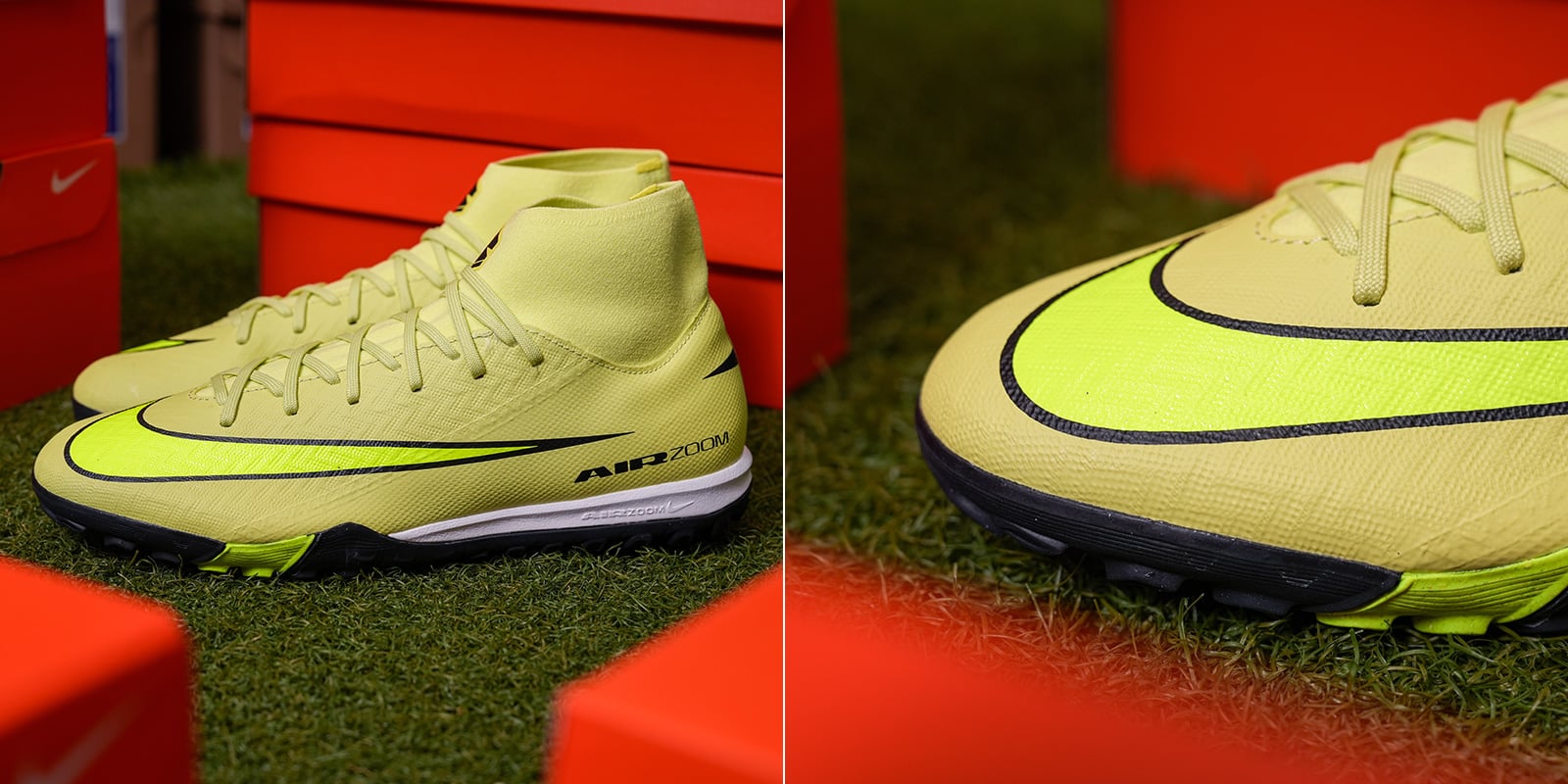 Là mẫu giày đinh TF thuộc bộ sưu tập MAX VOLTAGE PACK (10/2025) - series mang sắc màu điện áp cao, thể hiện tinh thần tốc độ, táo bạo và bùng nổ. Phối màu LIMELIGHT/HYPER CRIMSON/VOLT nổi bật với tông vàng chanh pha cam rực rỡ, tạo điểm nhấn mạnh mẽ mỗi khi bạn xuất hiện trên sân.