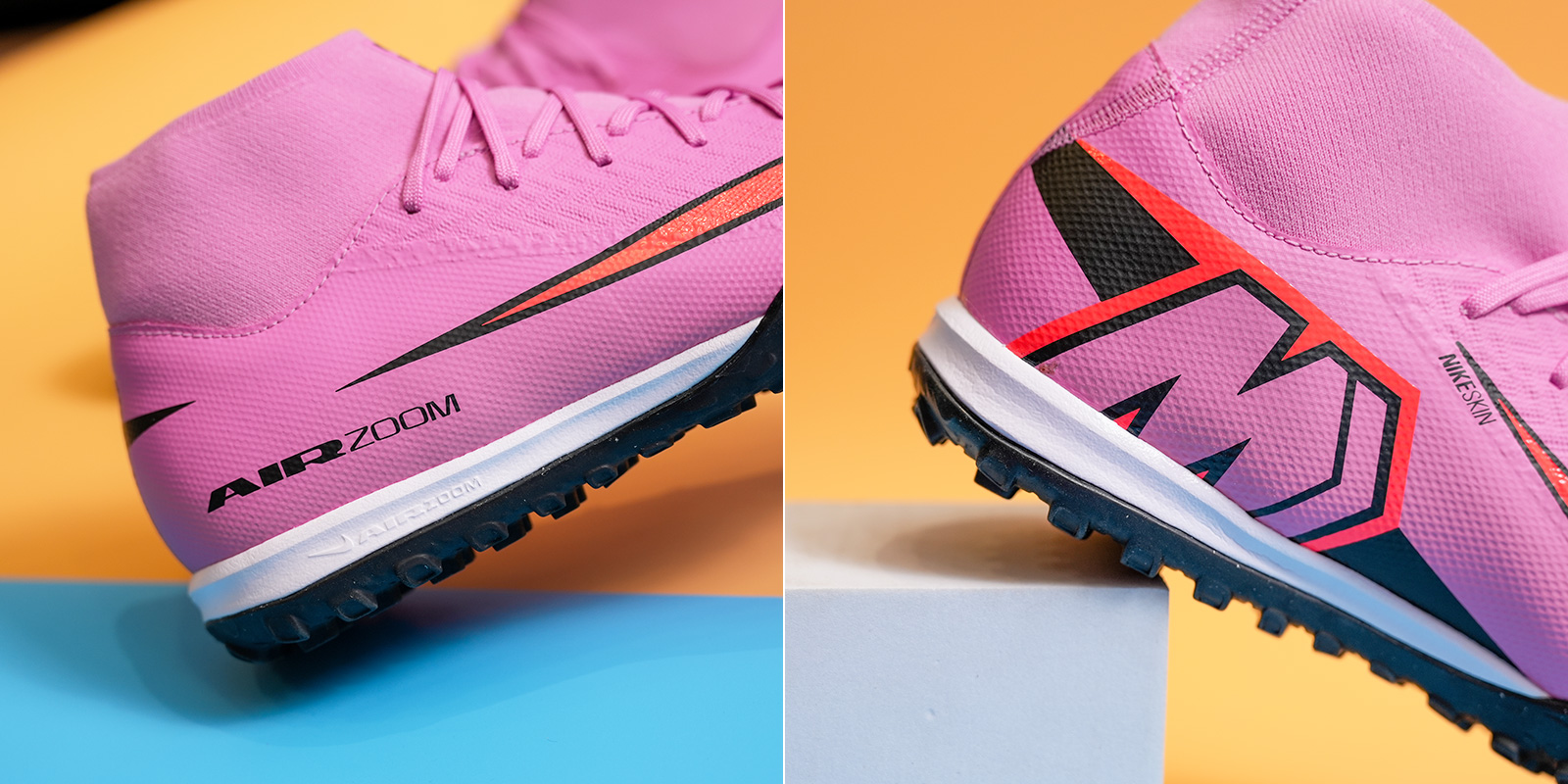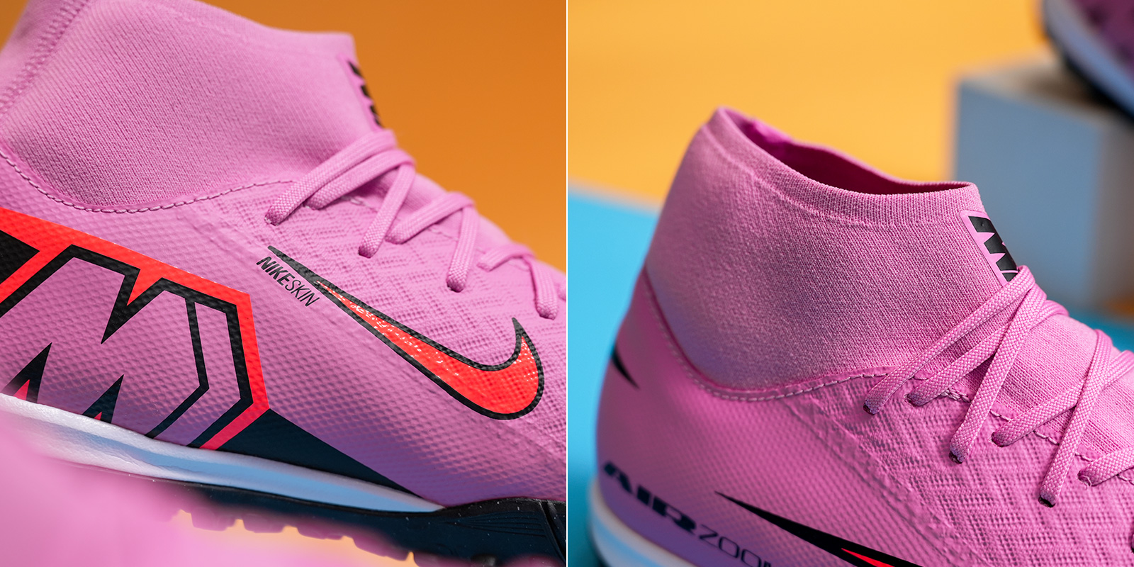Phần upper sử dụng vật liệu tổng hợp NikeSkin với cấu trúc mỏng, nhẹ, linh hoạt, mang lại cảm giác tiếp xúc bóng gần như chân trần.