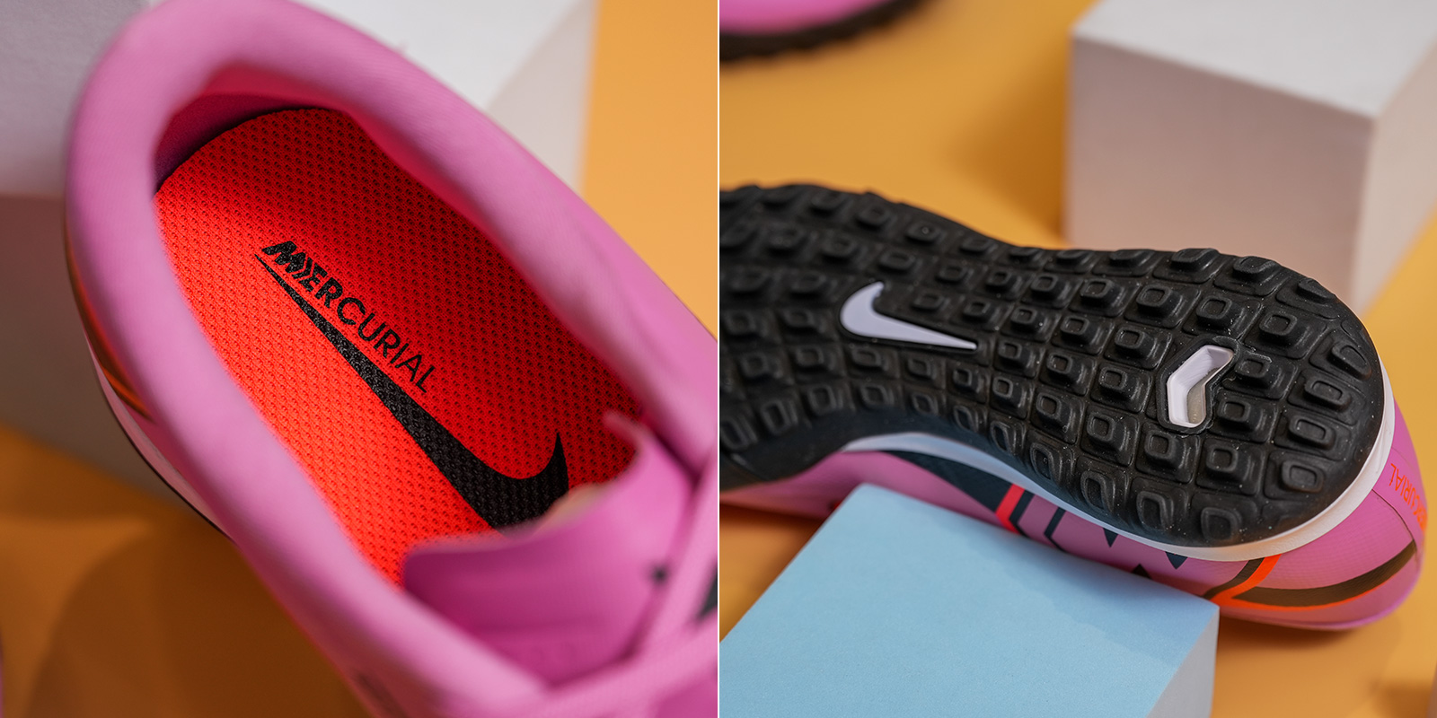 NIKE ZOOM MERCURIAL VAPOR 16 ACADEMY TF - PHỐI MÀU HỒNG TÍM/CAM là một lựa chọn hợp lý cho người chơi yêu thích tốc độ và phong cách khác biệt. Với công nghệ Zoom Air, upper NikeSkin cùng phối màu cực kỳ bắt mắt từ Scary Good Pack, mẫu giày này không chỉ giúp bạn chơi hay – mà còn khiến bạn trở thành tâm điểm trên mọi mặt sân cỏ nhân tạo.