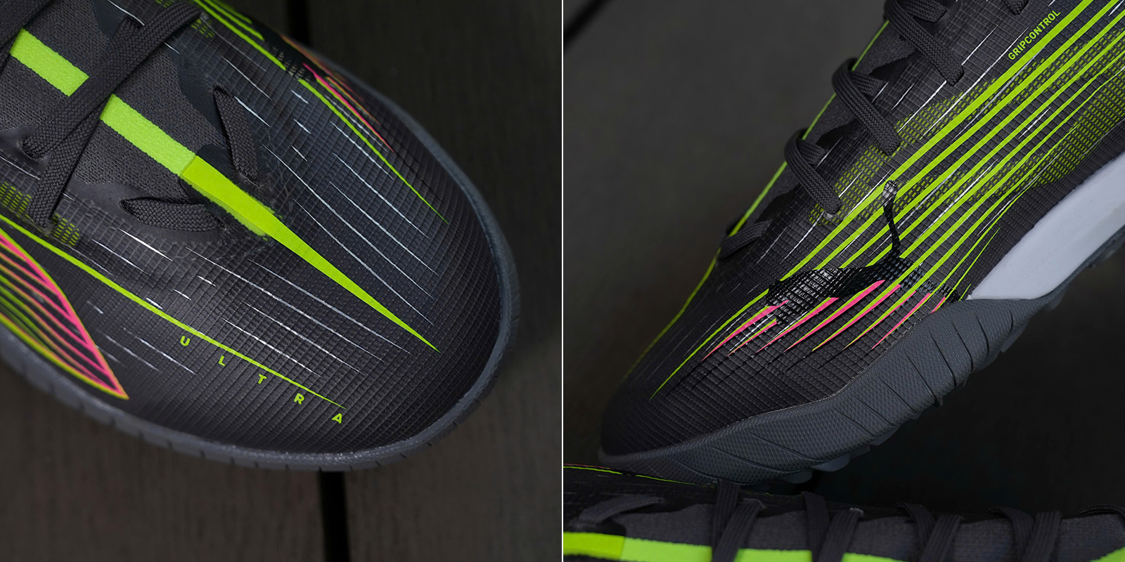 Trên bề mặt upper là lớp phủ GRIPCONTROL Skin giúp làm tăng độ bám bóng, từ đó nâng cao khả năng kiểm soát bóng của người mang khi rê dắt ở tốc độ cao.