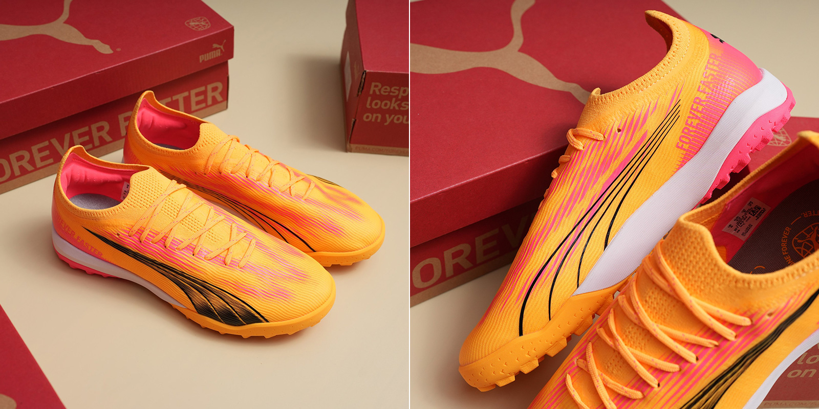 “Forever Faster Pack” là bộ sưu tập được PUMA ra mắt nhằm chuẩn bị cho một mùa hè đầy sôi động với sự trở lại của EURO 2024 và Copa America 2024. Sở hữu phối màu “Sun Stream/Puma Black/Sunset Glow” đầy bắt mắt, mẫu giày đá bóng Ultra Ultimate “Forever Faster Pack” sẽ được những ngôi sao hàng đầu PUMA mang trên chân như Antoine Griezmann, Antony, Kyle Walker, Raphael Varane, Christian Pulisic, Kingsley Coman...