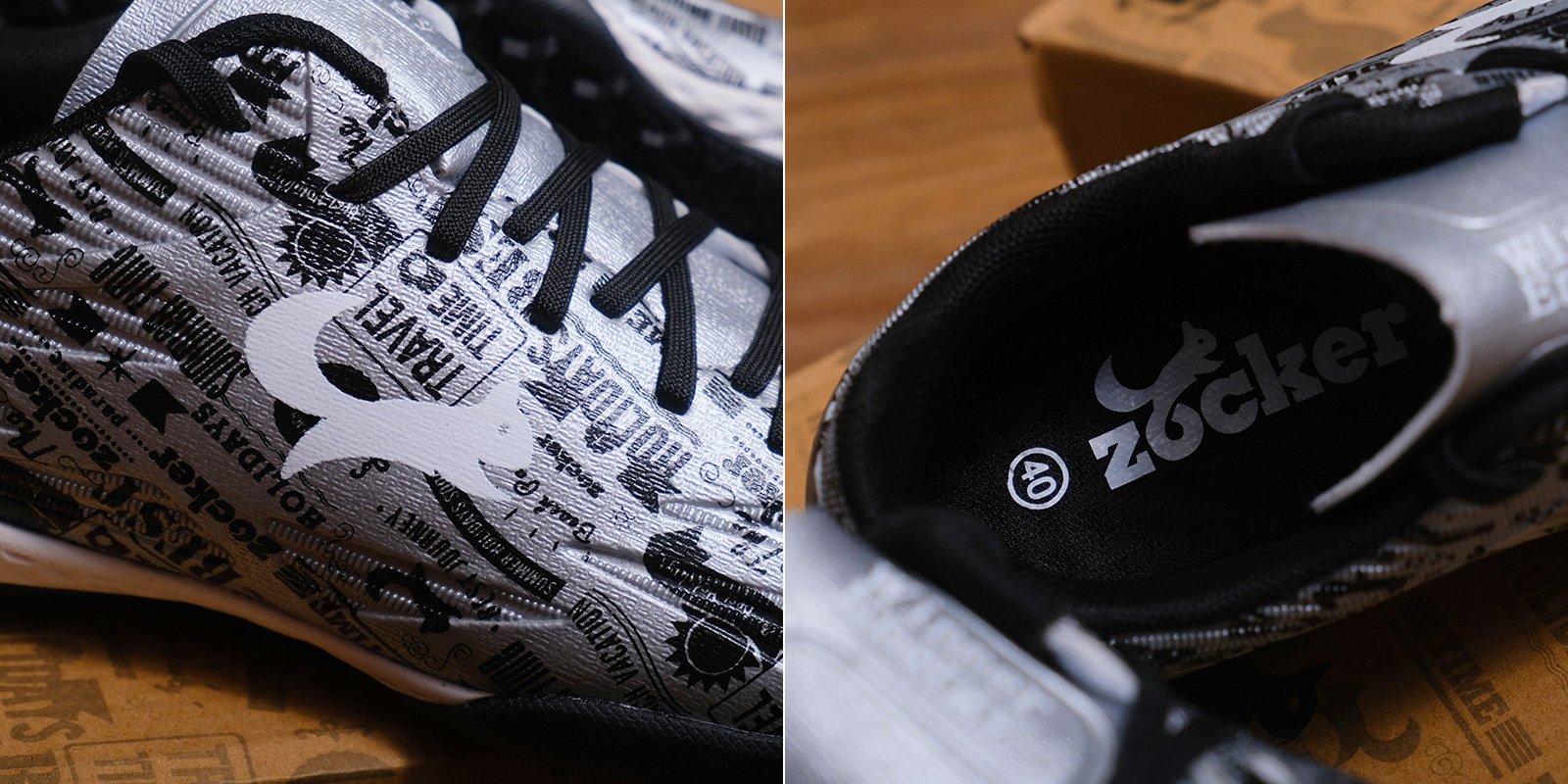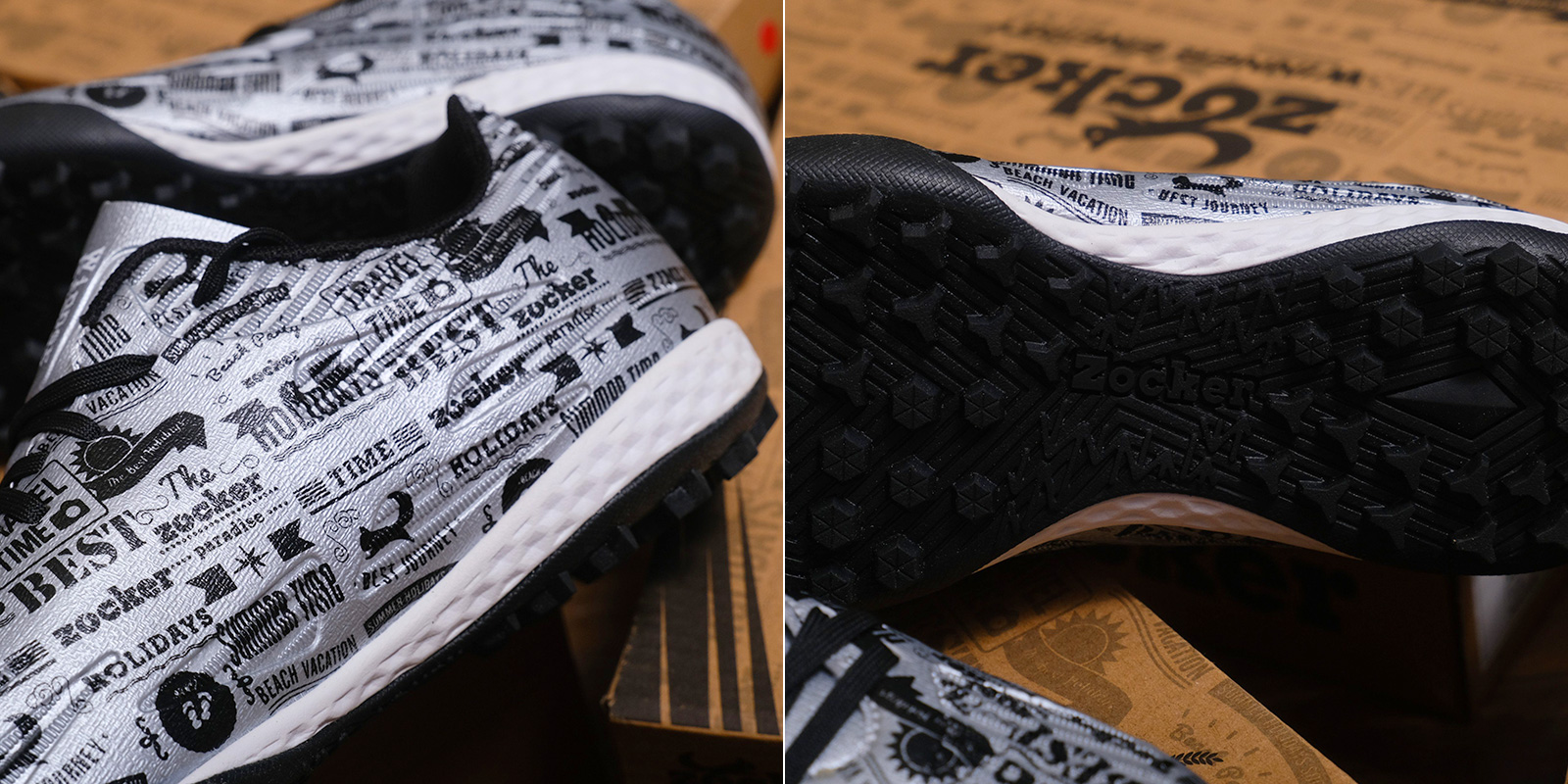 Giày bóng đá Zocker Winner Energy bạc được điểm thêm chi tiết màu trắng với điểm nhấn bắt mắt là các họa tiết độc đáo tạo bởi nhiều lát cắt laze. Ẩn sâu bên trong là nguồn "Năng lượng chiến thắng", mang tới cho người chơi sự tự tin, tích cực, tinh thần lạc quan.